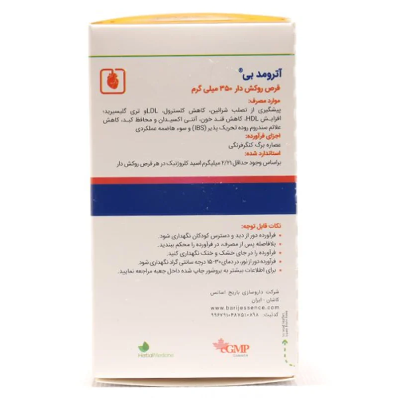 قرص آترومد – بی، مکمل غذایی حاوی عصاره برگ کنگر فرنگی است که برای بهبود سلامت قلب و عروق، دستگاه گوارش و کبد طراحی شده است. این قرص با کاهش تری گلیسیرید و LDL کلسترول (کلسترول بد) و افزایش HDL کلسترول (کلسترول خوب)، خطر بیماری‌های قلبی و عروقی را کاهش می‌دهد. همچنین، آترومد بی به بهبود عملکرد کبد، کاهش علائم سوء هاضمه و سندروم روده تحریک پذیر و کمک به کنترل قند خون کمک می‌کند. خواص آنتی‌اکسیدانی این قرص نیز از سلول‌ها در برابر آسیب‌های رادیکال‌های آزاد محافظت می‌کند.