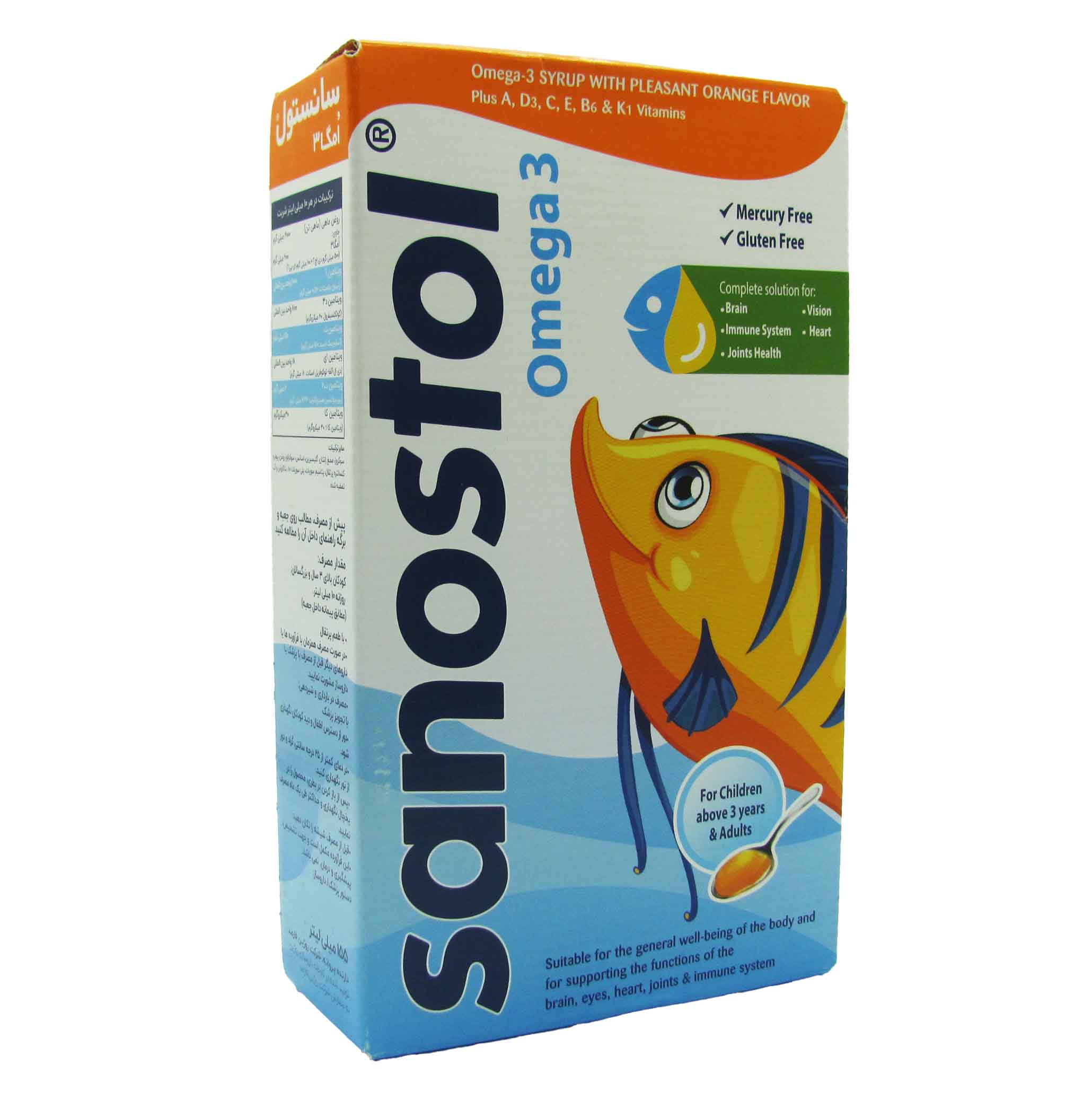 شربت امگا3 سانستول، مکمل غذایی کاملی است که حاوی DHA و EPA، اسیدهای چرب امگا 3، به همراه ویتامین‌های A، D، C، K، E و B6 است. این شربت با طعم پرتقال، برای تقویت مغز و حافظه، بهبود عملکرد سیستم ایمنی و بینایی، حفظ سلامت قلب و عروق و مفاصل، مخصوص کودکان بالای 3 سال و بزرگسالان فرموله شده است. بدون گلوتن و جیوه بوده و به دلیل داشتن ویتامین‌های مختلف، از رشد و تکامل کودکان نیز حمایت می‌کند.