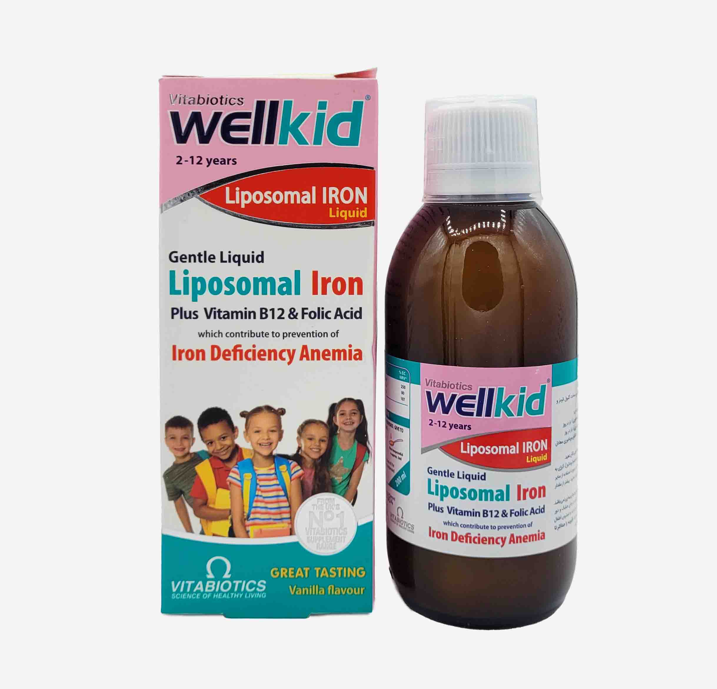 شربت ول کید ویتابیوتیکس یک مکمل غذایی ویژه کودکان است که با استفاده از فناوری لیپوزومال، جذب آهن را در بدن آسانتر کرده و از بروز عوارض گوارشی معمول آهن جلوگیری میکند.